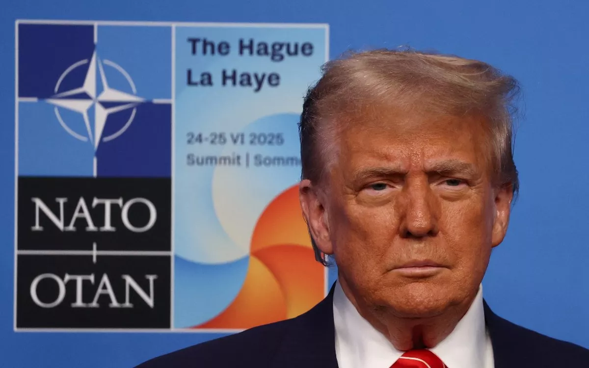 Le président américain Donald Trump lors du sommet de l’OTAN à La Haye, aux Pays-Bas, le 25 juin 2025. (Jakub Porzycki/NurPhoto via AFP).